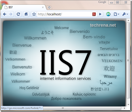 Now after successful installation Of IIS7 you can type http://localhost/ in your browser to check. It should display the IIS7 home page as shown below.